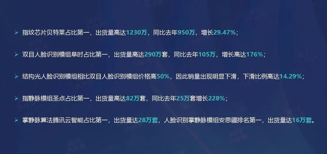 2023年12月23日,CSS 2023第四届中国智能家居(深圳)峰会在腾讯滨海大厦隆重举行,《2023智能门锁行业白皮书》也重磅揭晓。根据白皮书发布的数据,阜时科技人脸识别模组全市场出货290万套,连年稳居第一,占比40%以上,是当之无愧的行业销冠。