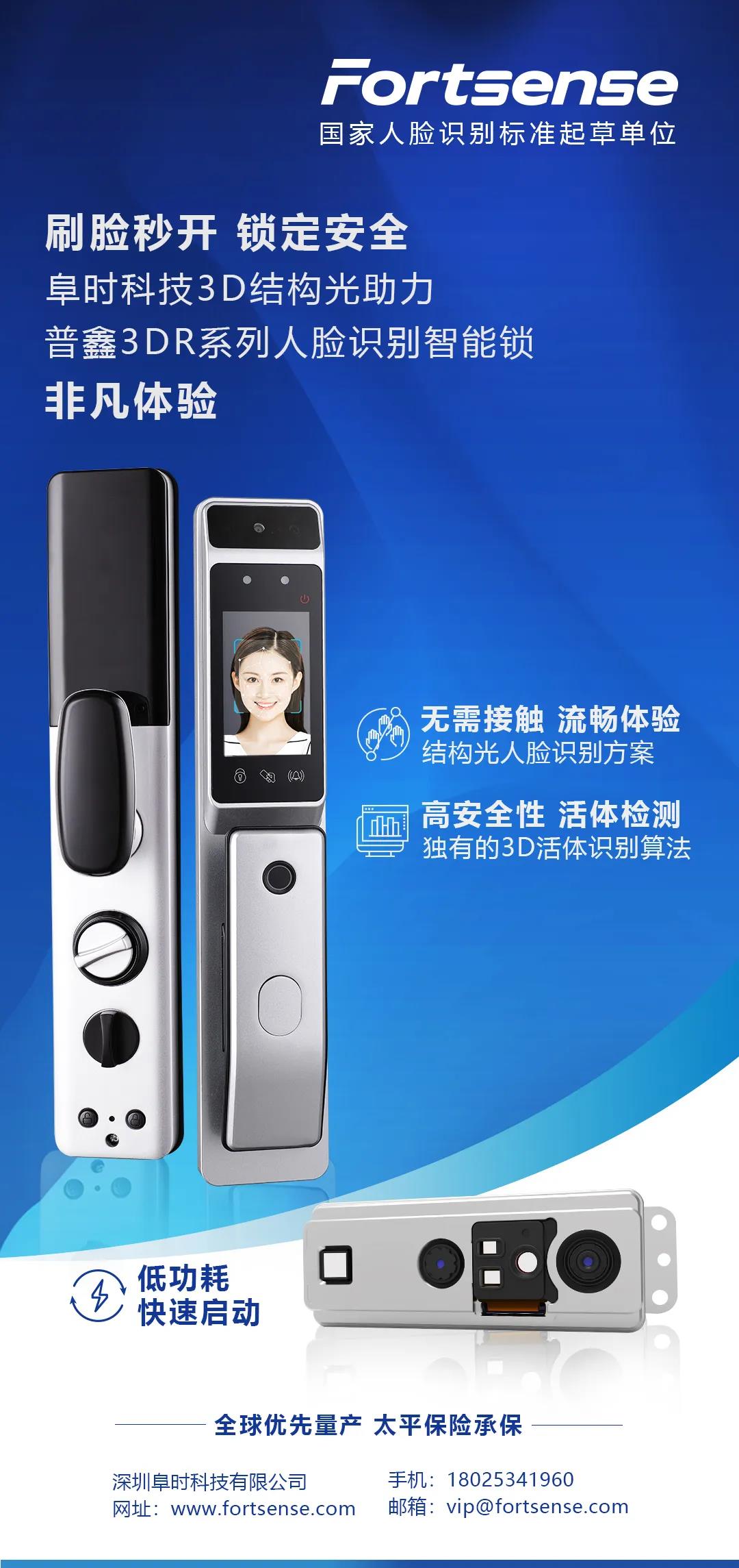 刷脸秒开,锁定安全!阜时科技3D结构光助力普鑫3DR系列人脸识别智能锁非凡体验