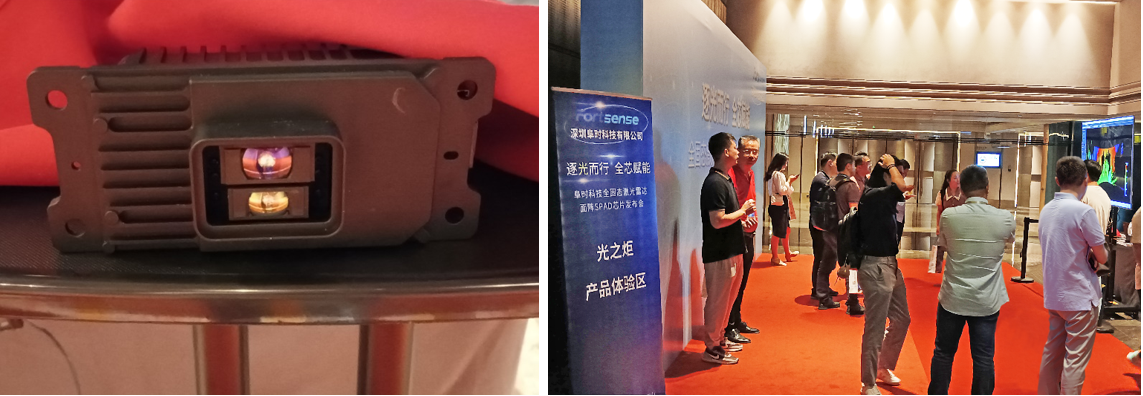 前两年Sony发布的 IMX459芯片,有效像素约12k,分辨率不足以满足车用要求。阜时发布的FL6031有效像素超过50k,比市面上任何一款都要高,完全满足上车要求,超大视场,高帧率,高分辨率,未来目标是迭代出有效分辨率超过VGA的高清激光雷达接收芯片。在FL6031送样、整机功能演示和客户装机测试后,阜时科技举办了这场新品发布会,向公众揭开神秘面纱。