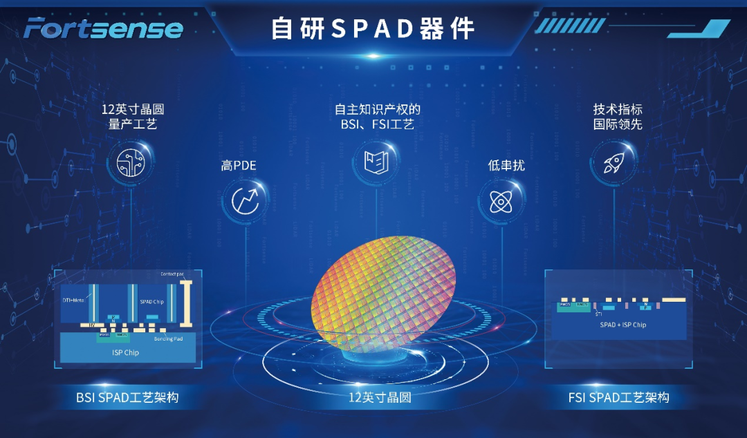 未来,3D视觉将成为主流技术路线。「阜时科技」已开展未来三年的前沿芯片技术研发,全面布局SPAD单点、单线、多线和面阵的流片,已在海外晶圆厂和国内晶圆厂陆续产出不同应用场景的产品。